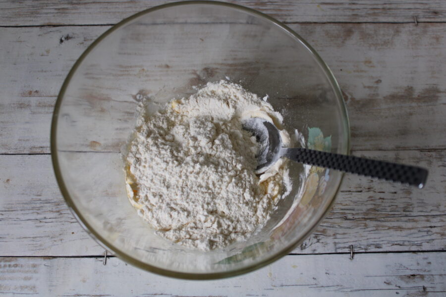 - Se adauga ingredientele uscate, faina trebuie cernuta.