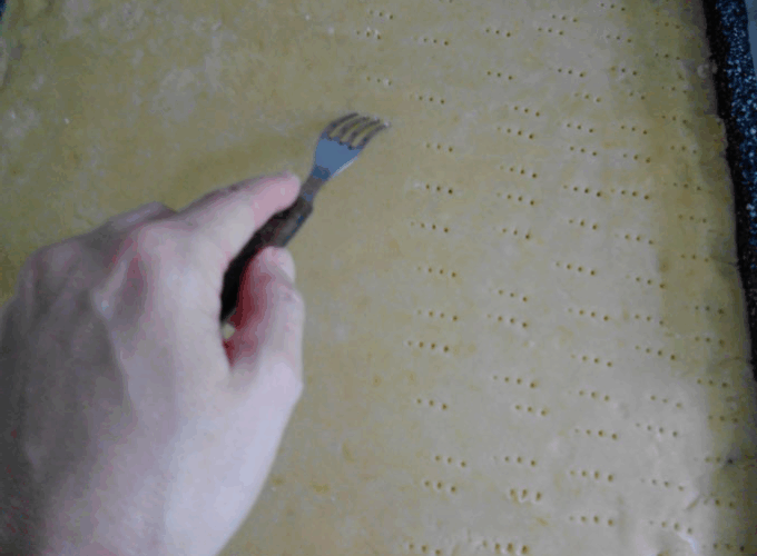 - Înțepăți aluatul cu o furculiță (pentru a preveni formarea de bule în timpul coacerii).