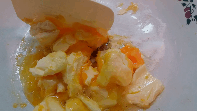 - Amestecați untul moale, zahărul, gălbenușurile de ou, coaja de lămâie proaspăt rasă și câte un praf de sare și scorțișoară. Cerneți făina peste amestec și îndoiți-o rapid (de preferință cu mâna folosind o spatulă de patiserie). Sfat: Nu frământați aluatul cu făină prea mult timp, altfel va deveni sfărâmicios.