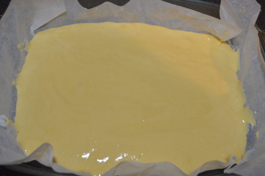- Turnati compozitia intr-o forma de copt, tapetata cu hartie de copt.