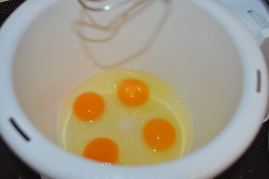 - Spargeti ouale intr-un castron, bateti cu mixerul la viteza medie.