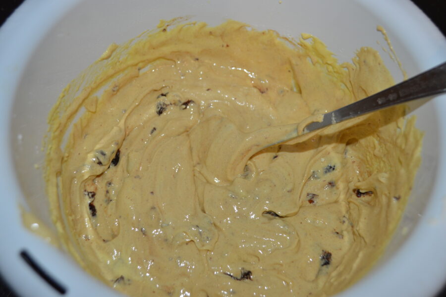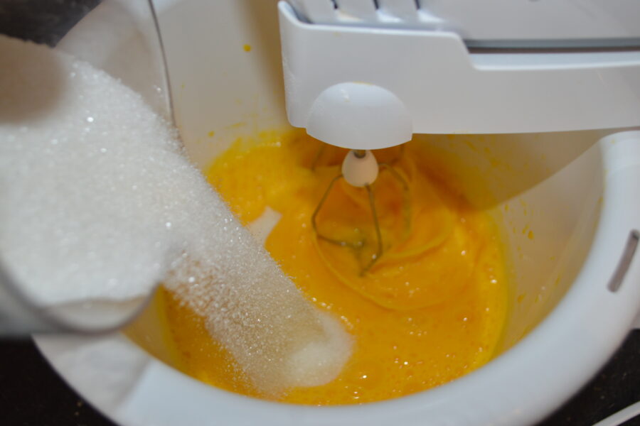 - Adaugati zaharul, si bateti pana se topeste zaharul complet.