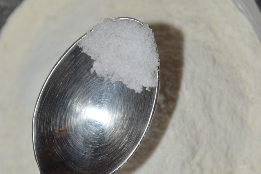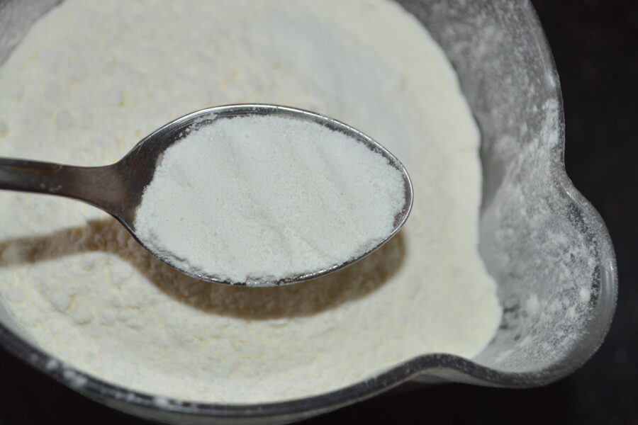 - Intr-un recipient aparte puneti faina, si adaugati in ea cele doua lingurite de praf de copt.