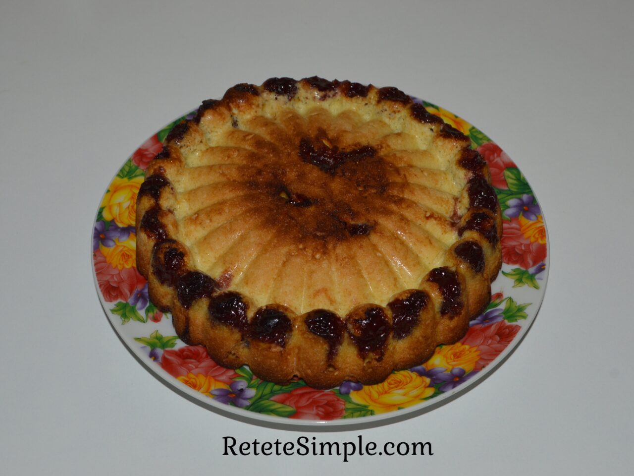 - Prajitura cu visine este gata, rasturnati forma intr-o farfurie si serviti. Pofta buna!