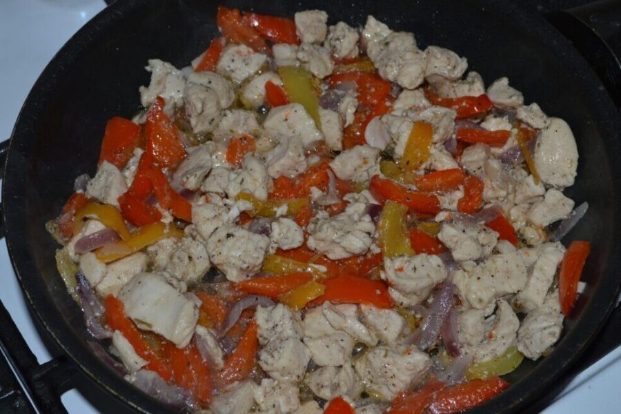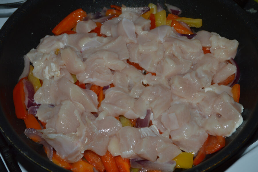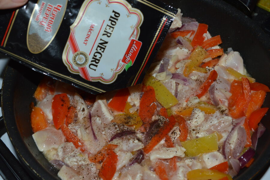 Reteta simpla si gustoasa de piept de pui cu ardei dulce, preparata la tigaie.