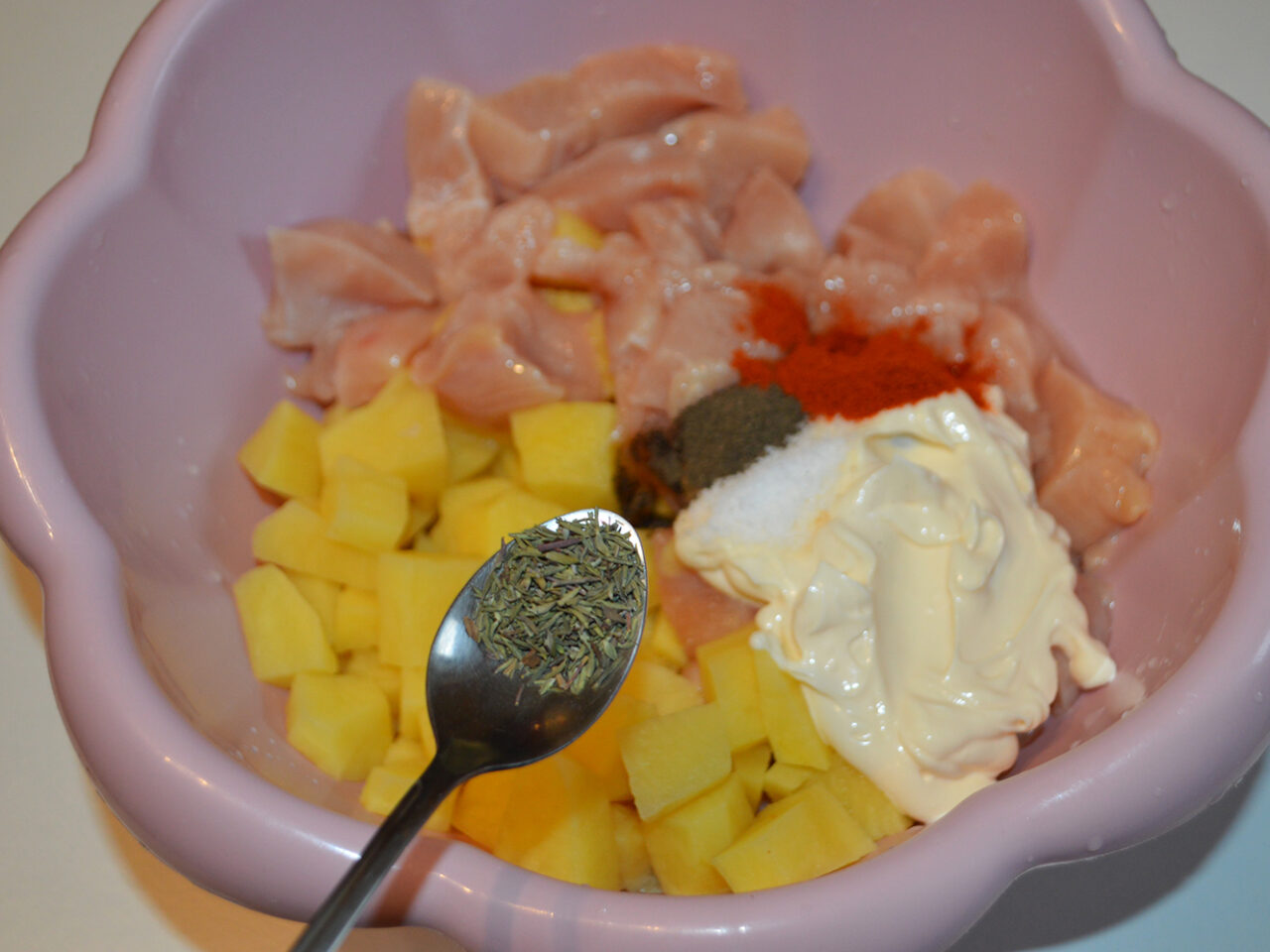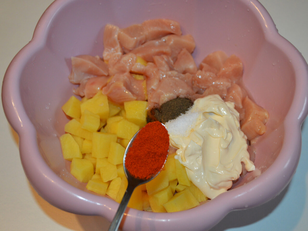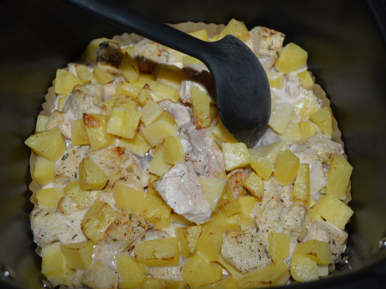 O reteta simpla si usoara de pranz sau cina – piept de pui cu cartofi preparati in Air Fryer cu maioneza si condimente. Se prepara intr-un timp foarte scurt.