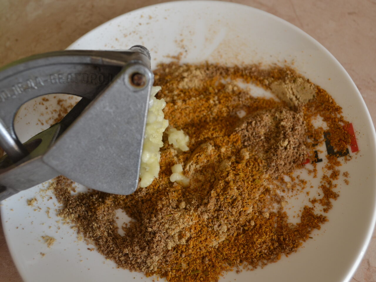 - Curățați și tăiați usturoiul. Puteți folosi o răzătoare obișnuită sau o presă specială. Unii oameni preferă să taie mărunt usturoiul sau să-l zdrobească plat cu lama unui cuțit. Adăugați usturoiul la condimente și amestecați.