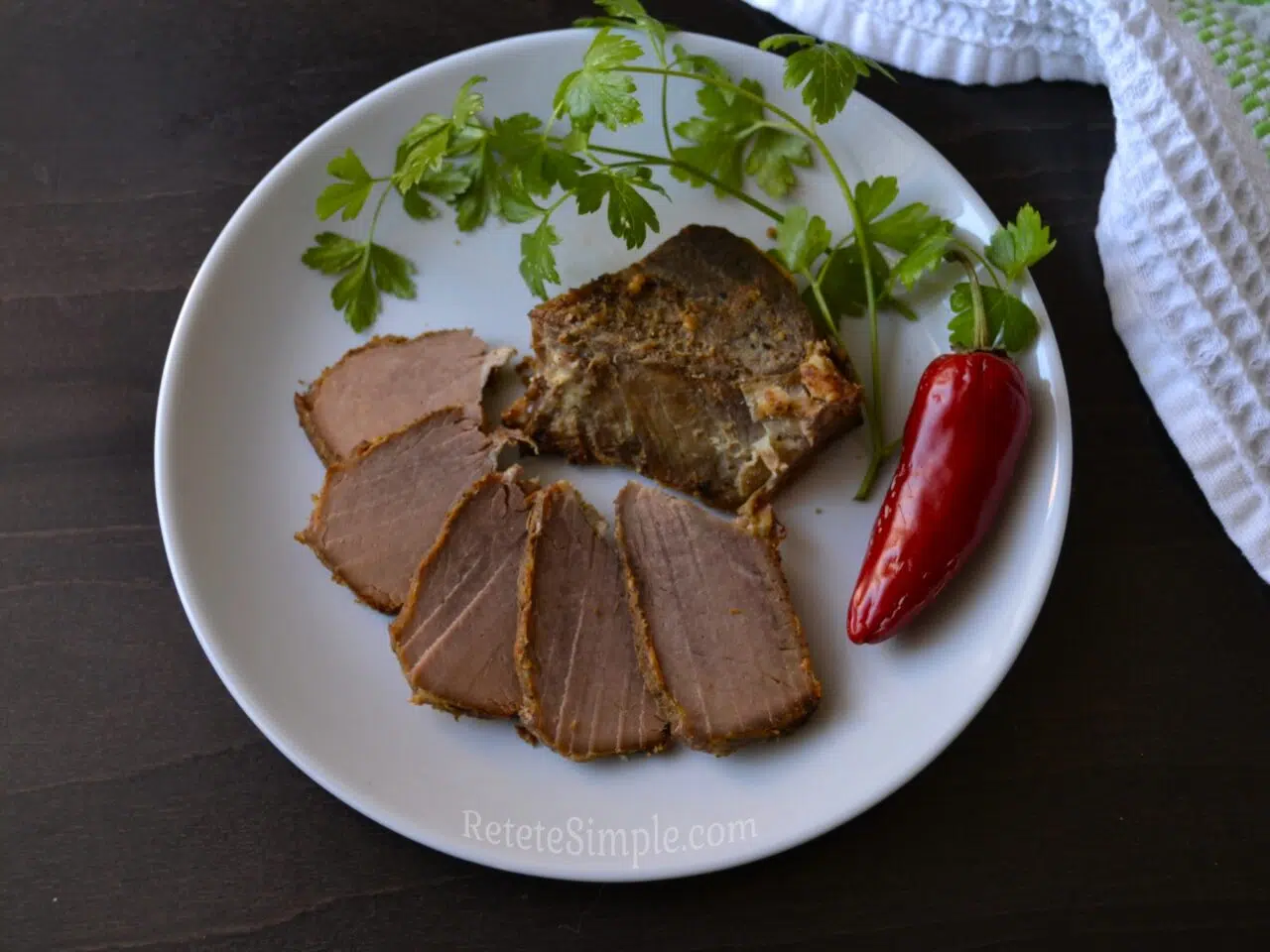 O rețetă de carne de vită gătită la cuptor cu usturoi, ierburi și muștar.