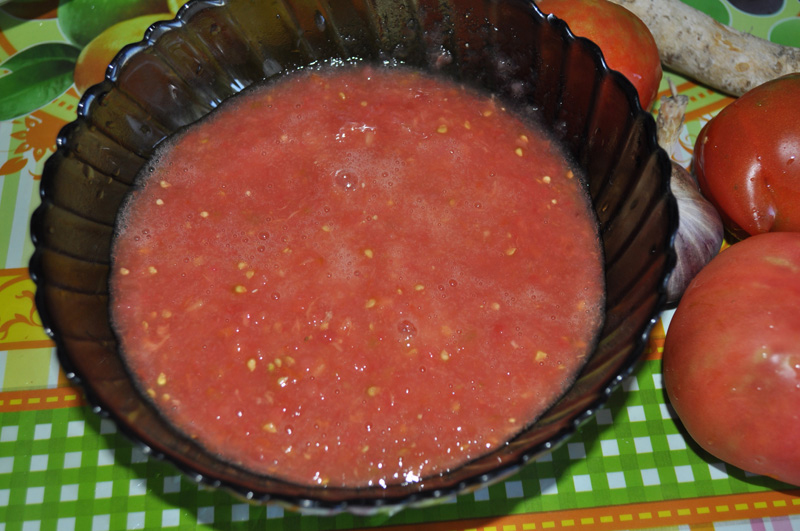- Вымойте все овощи. Перекрутите сначала вымытые помидоры.