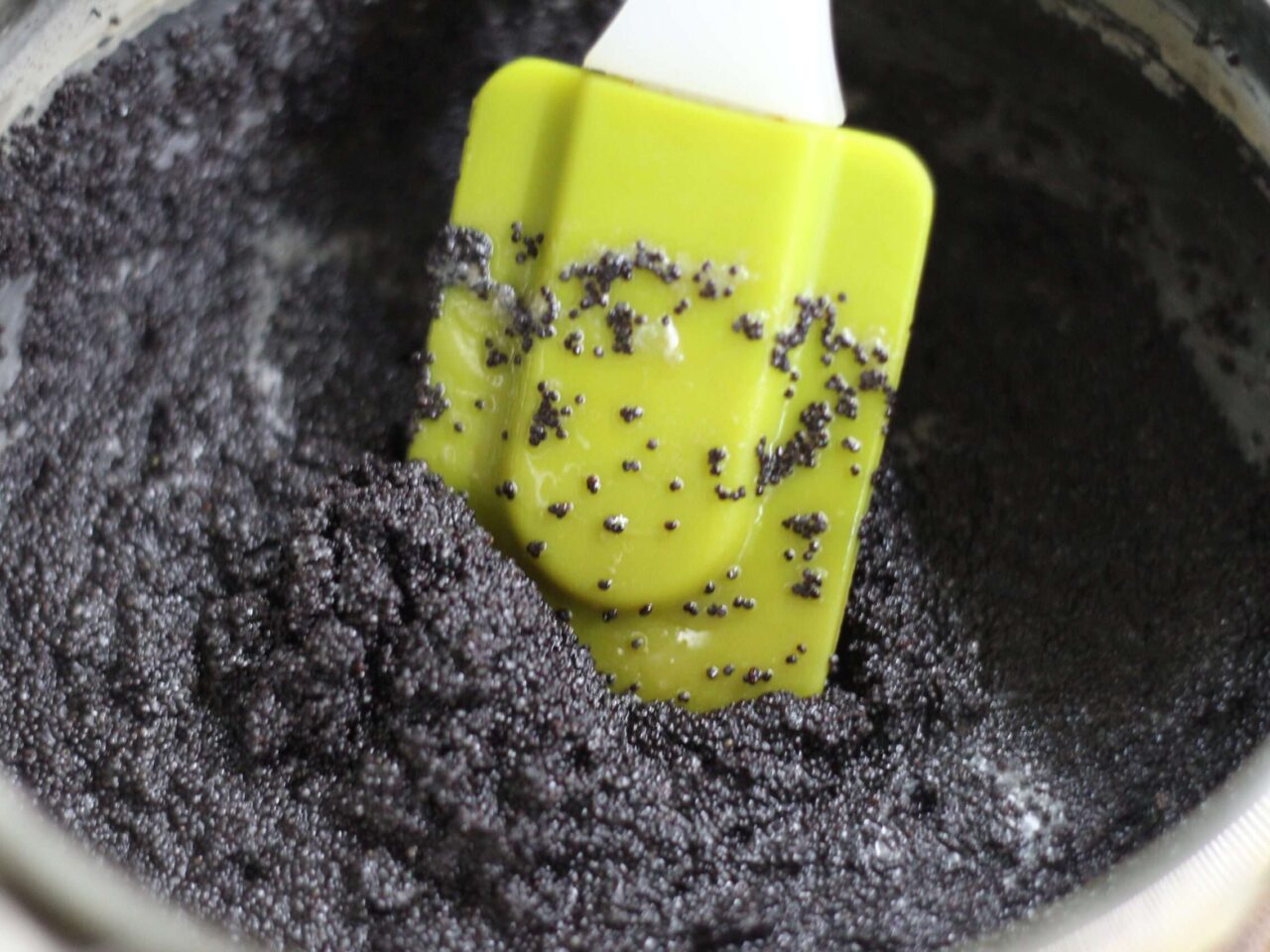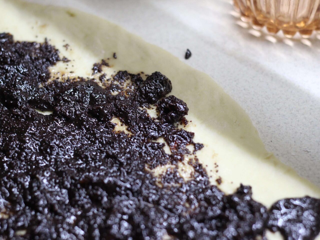 - Выложить охлажденную начинку из мака равномерным слоем.