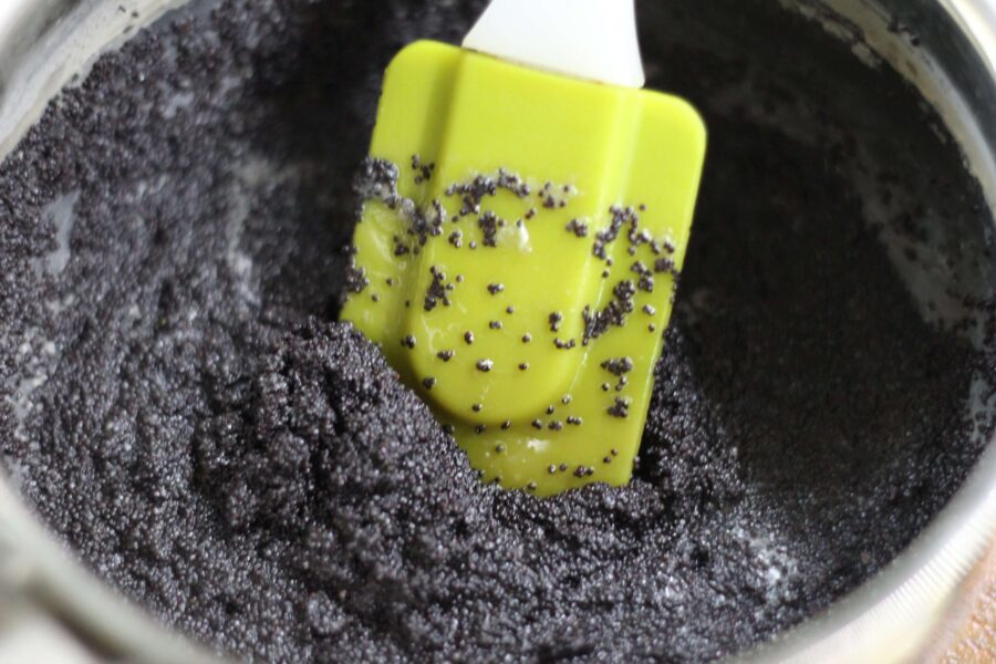 - Прежде всего нужно подготовить маковую начинку. Следует залить мак половиной массы молока и проварить до испарения жидкости. Перебить вареный мак с помощью погружного блендера. Добавить сахар, оставшееся молоко с крахмалом и перемешать начинку. Отправить на огонь и варить до загущения. Дать начинке полностью остыть.