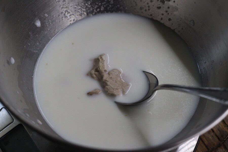 - Для приготовления теста следует развести сахар в теплом молоке вместе с дрожжами, ванилью и солью.
