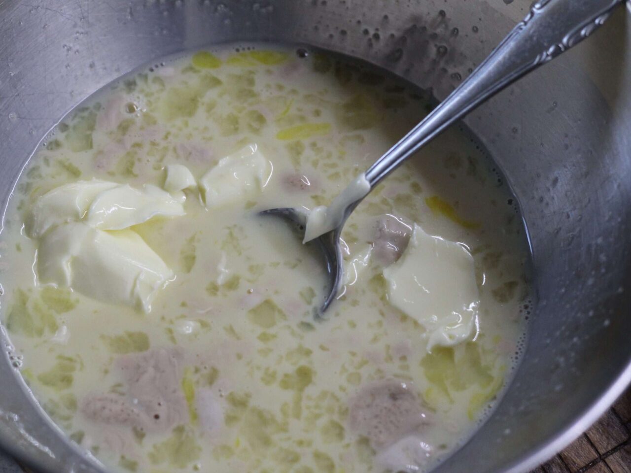 - Взбить яйцо и добавить половину продукта в тесто.