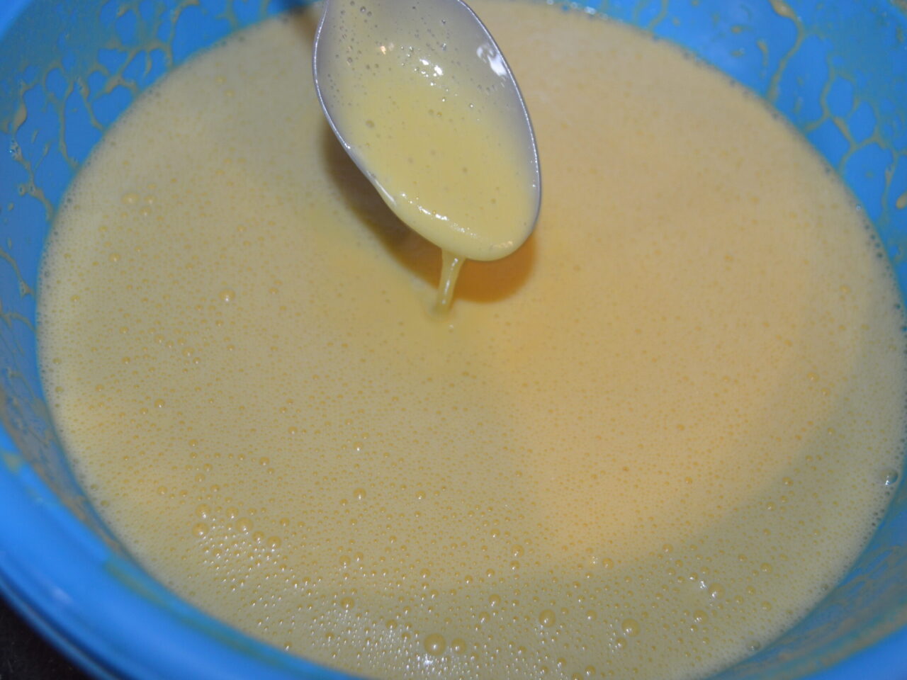 - У вас получится жидкое тесто, даже более жидкое, чем тесто для блинов.