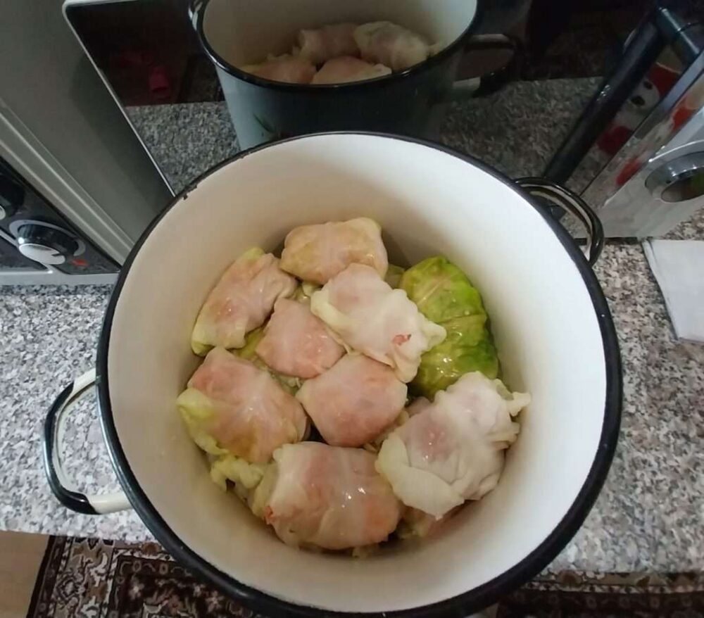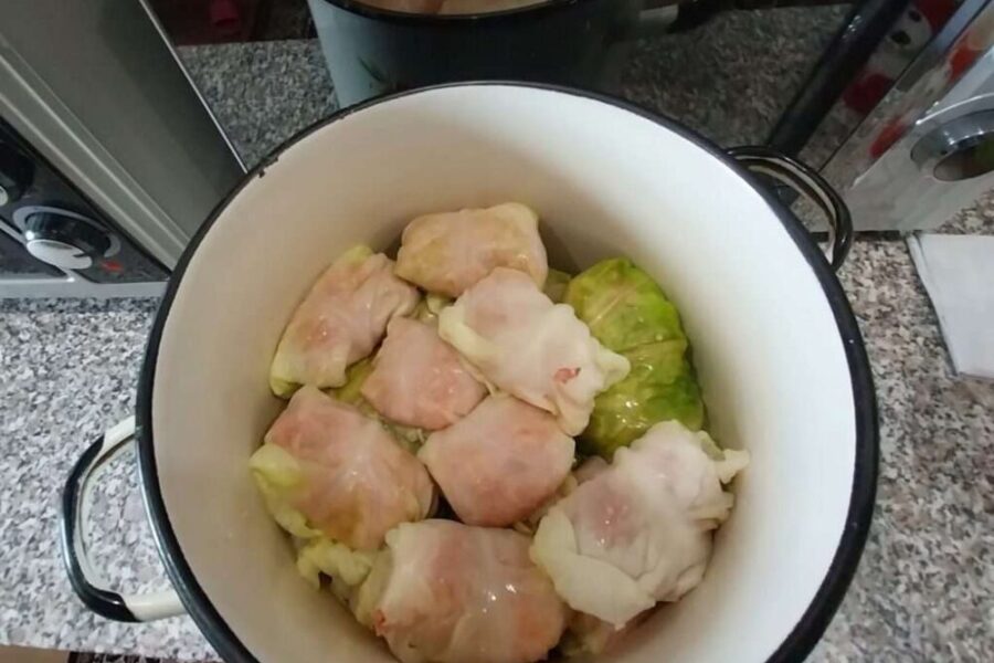 Прежде чем приступить к этапу подготовки продуктов, необходимо убедиться в наличии глубокой и большой кастрюли. Она должна быть объемом около 10 литров. Такой объем нужен для того, чтоб в нее поместился кочан капусты. Лучше использовать кастрюлю наподобие чугунной. Стенки такой кастрюли толстые и предотвращают прилипание листьев. Если нет такой кастрюли, то пойдет обычная. Важно следить за процессом варки и снимать вовремя листы, чтоб они не подгорели.