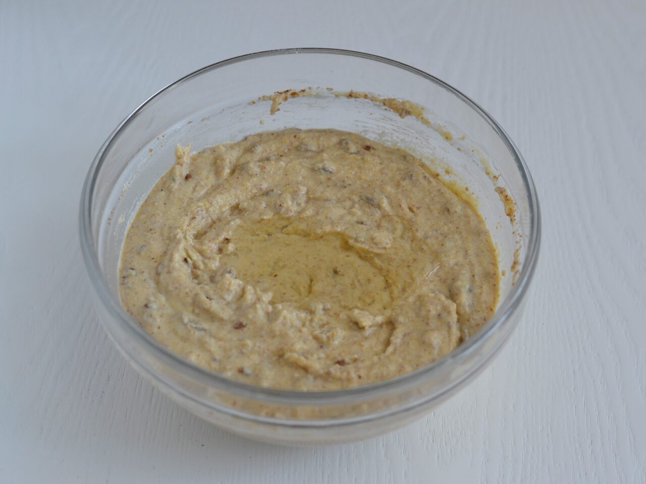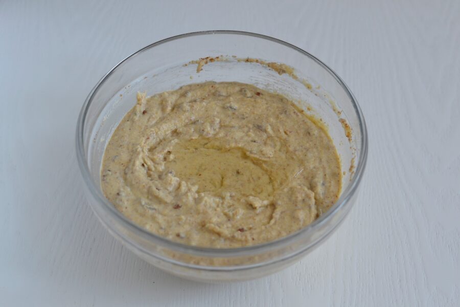 - Вливаем масло и все составляющие хорошо перемешиваем между собой. Тесто должно быть средней консистенции, не слишком жидким, но и не густым.