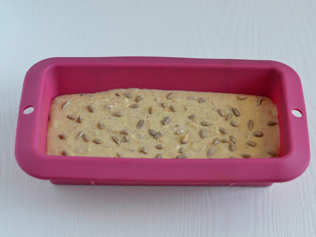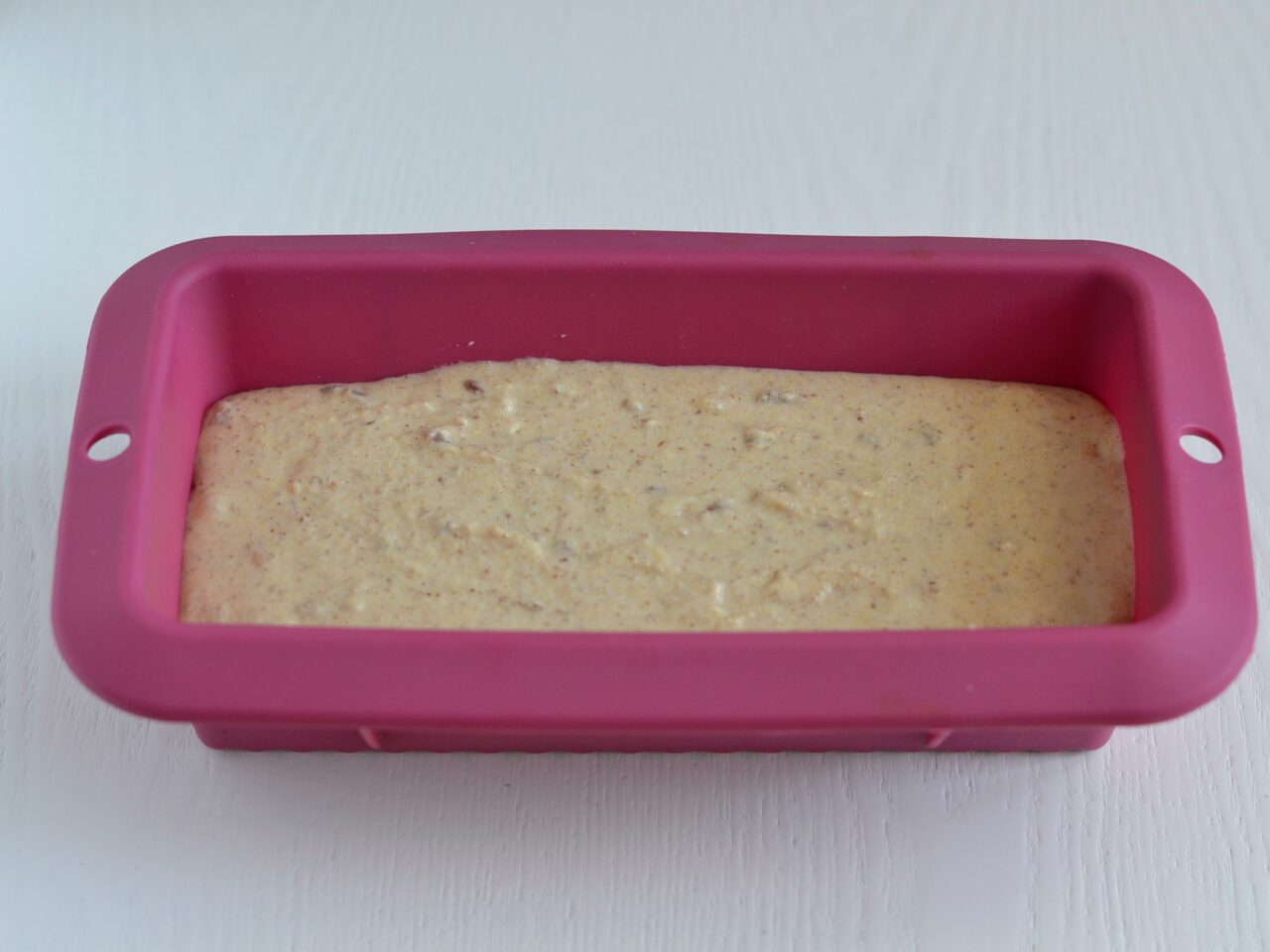 - В силиконовую форму для выпечки аккуратно наливаем подготовленное тесто.