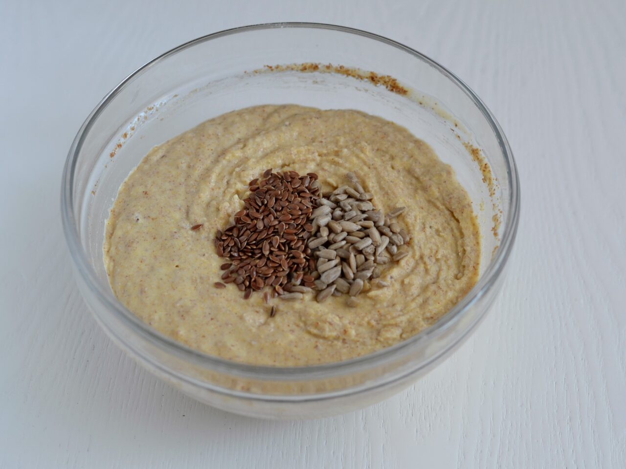 - Добавляем льняные семена и семя подсолнечника.