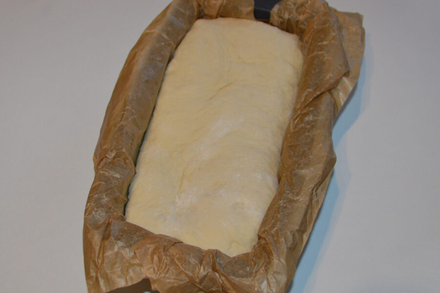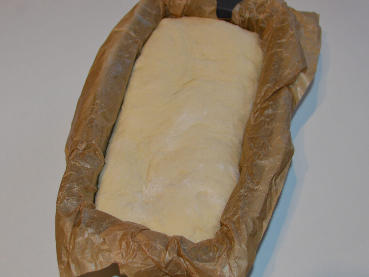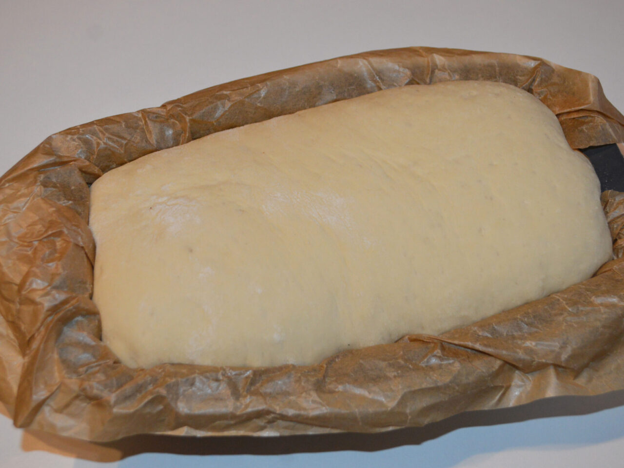 - Выложите хлеб на противень, застеленный бумагой для выпечки, и накройте полотенцем. Оставьте подниматься еще на 20 минут.