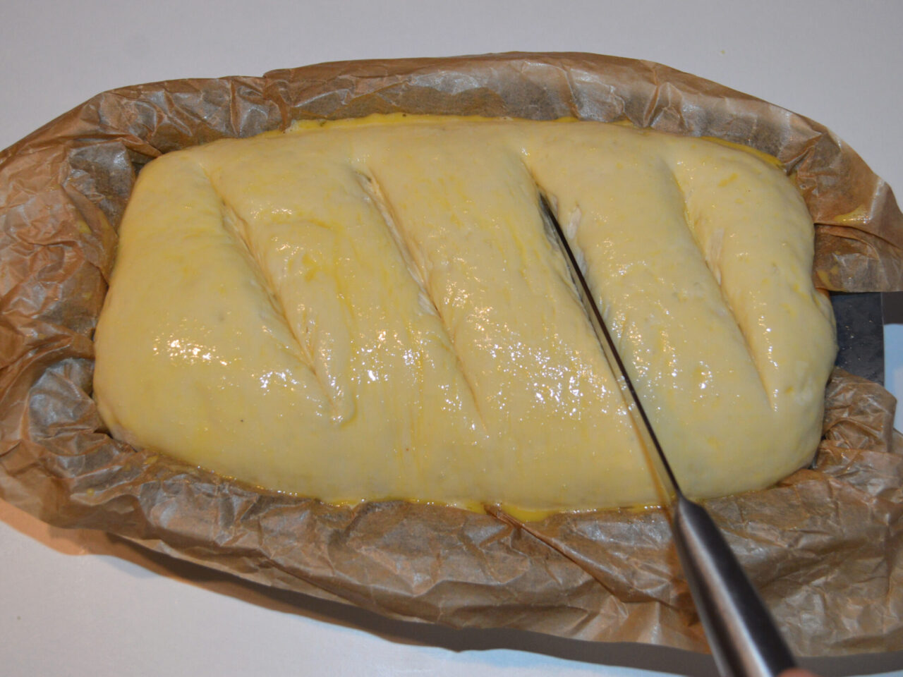 - Важный момент при выпечке хлеба — надрез ножом, он помогает хлебу хорошо раскрыться во время выпечки, не растрескиваясь от избытка газа. Благодаря этому мякиш будет хорошо проветриваться и подниматься.
