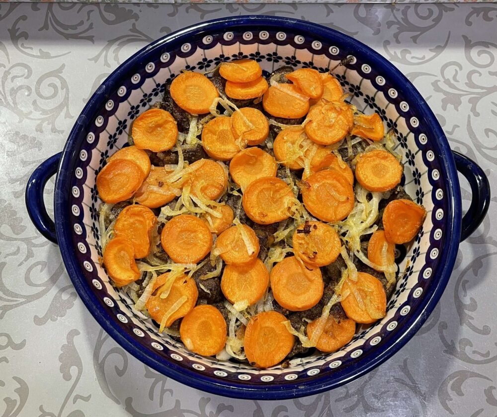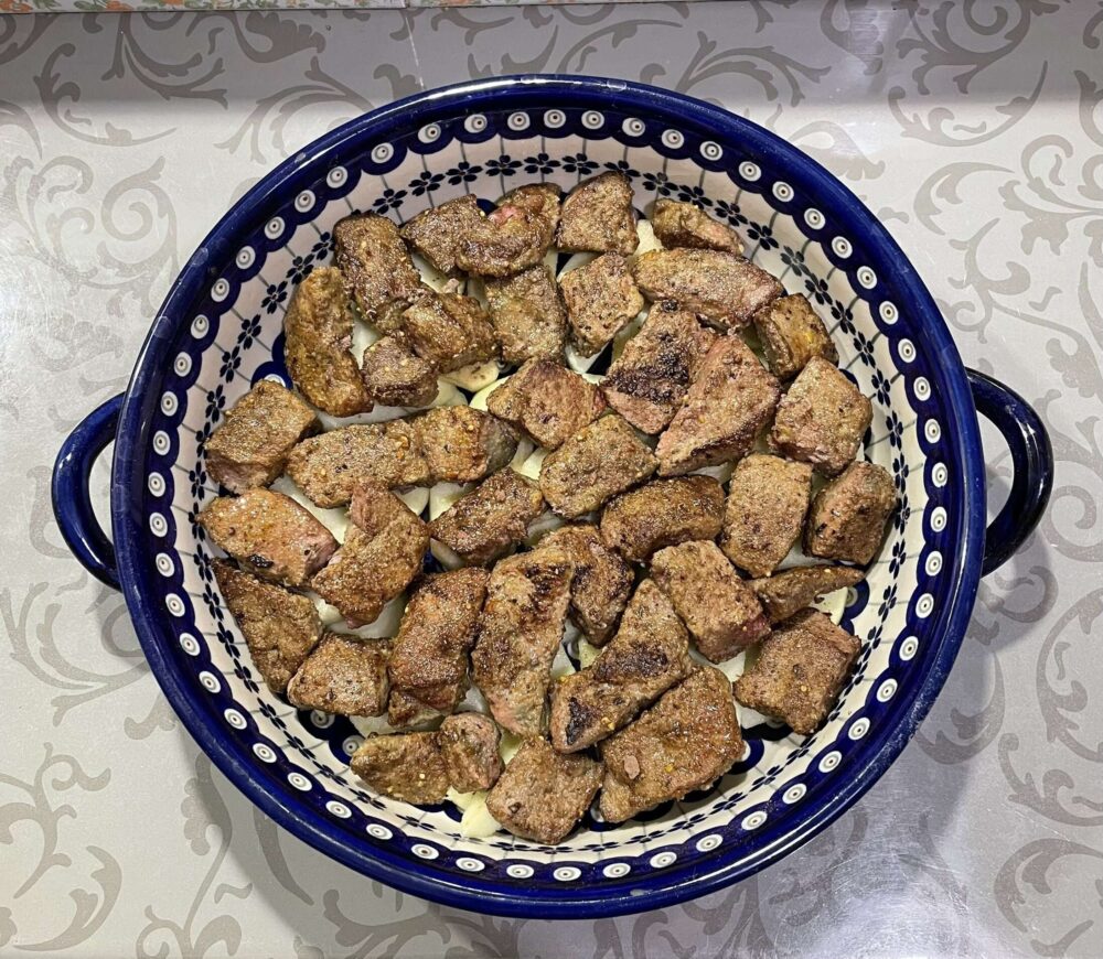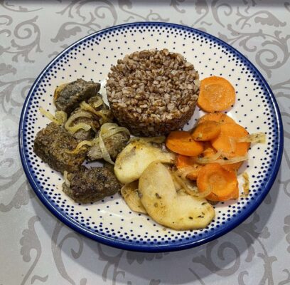 - Готовую печень я подаю, разделяя слои на тарелке. Так блюдо выглядит аппетитнее. А в роли гарнира обычно выступает гречка.