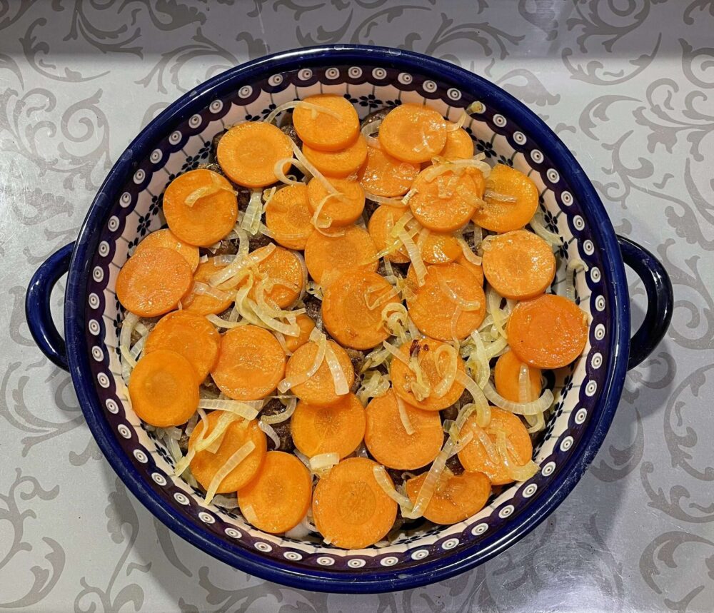 - Луковицу очищаем, нарезаем полукольцами. Берем чистую сковороду, добавляем столовую ложку масла, слегка обжариваем лук. Когда он станет прозрачным, отправляем к нему морковь. Готовим, помешивая, 10 минут. Можно выложить печень на тарелку и использовать сковороду с оставшимся после нее маслом. Но я обжариваю овощи отдельно. Они не смешиваются с печеночными соками и красиво выглядят в готовом блюде.