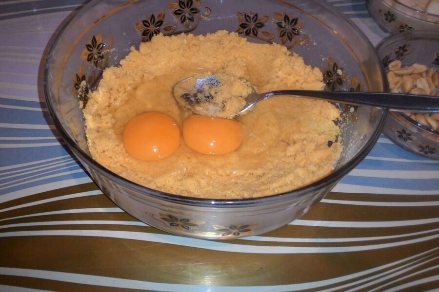 - При размешивании получается смесь, напоминающая песочное тесто.