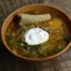 - После готовности мясо вынимаем и оставляем остужать. Бульон можно процедить, чтобы избавиться от мелких осколков костей. Мясо отделяем от косточек, можно его разделить на мелкие волокна и оставить так, а можно пропустить через мясорубку. Я воспользовалась вторым вариантом, так холодец получается нежным.