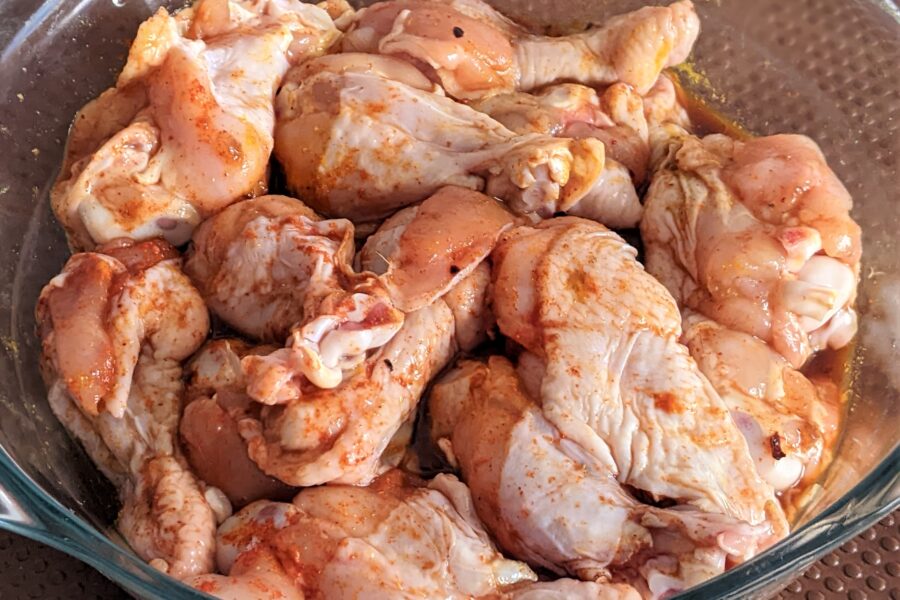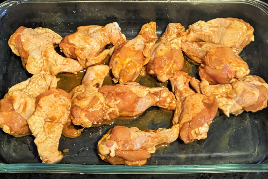 - Я использовала плечевую часть крыльев. Крылья маринуем в смеси соевого соуса, мёда, сока лимона, соли и пряностей. Маринад составляйте по своему вкусу, но обязательно добавьте мёд – он придаст карамельный цвет и вкус крыльям.