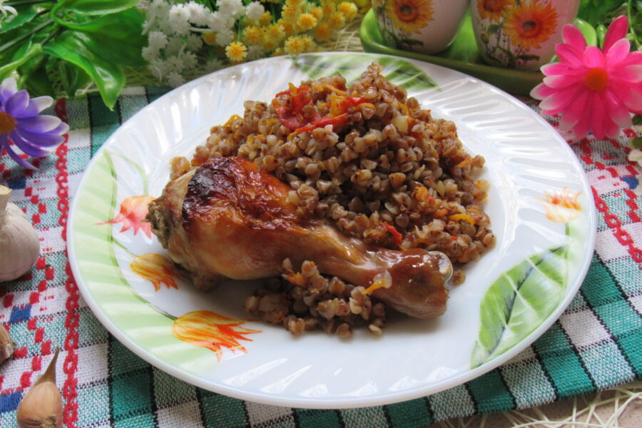 Всем любителям простых, но вкусных блюд предлагаем приготовить куриные ножки с гречкой в духовке. Это неприхотливое и по составу ингредиентов, и по способу приготовления кушанье может стать прекрасным вариантом сытного, но в то же время достаточно легкого ужина. Гречку не будет лишним дополнить сочными овощами, тогда она получится намного нежнее, ароматнее и вкуснее. А ножки куриные, разумеется, не помешает предварительно замариновать.