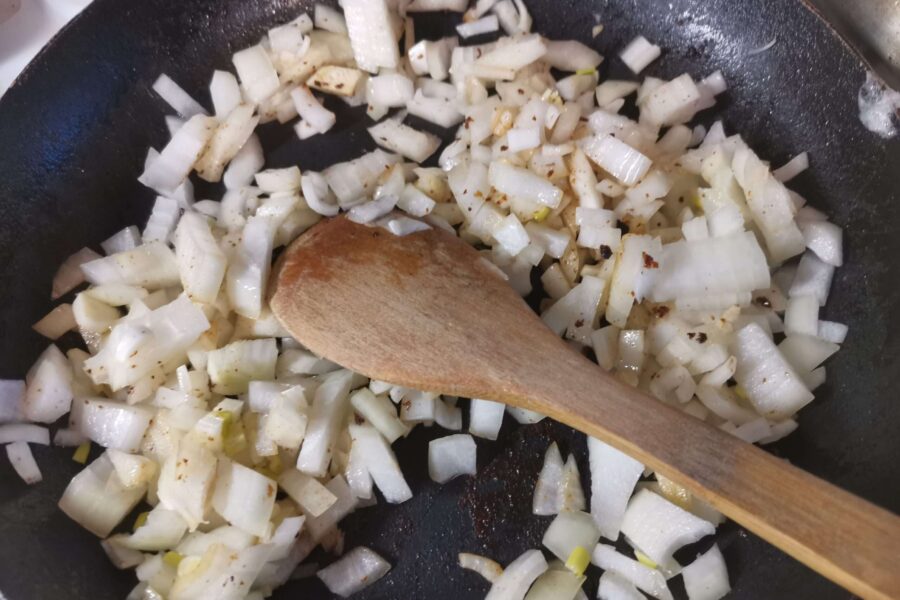 - Обжариваем лук на растительном или сливочном масле до золотистого цвета.