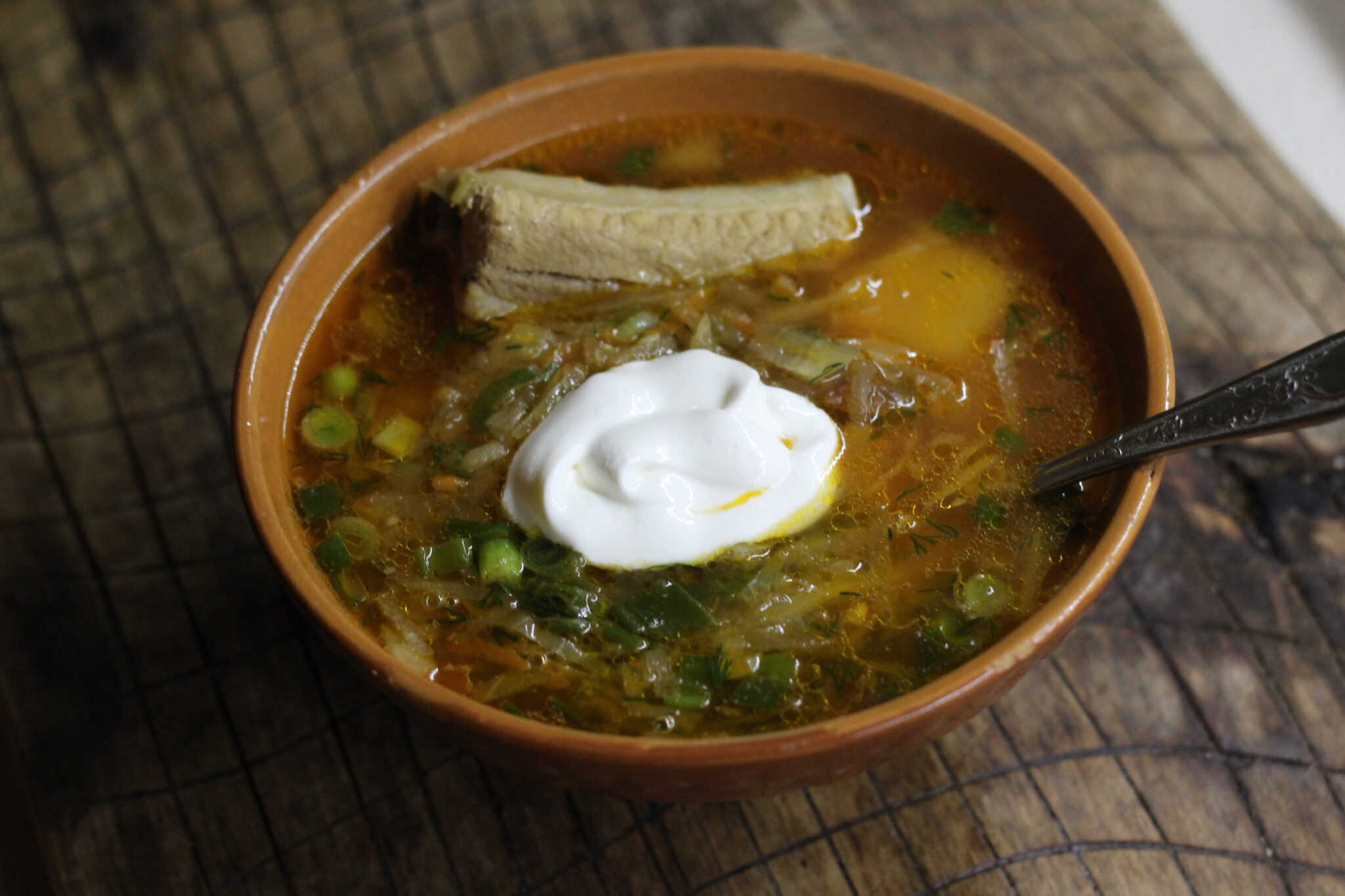 - Вкусный и ароматный борщ с ребрышками готов! При подаче блюдо можно дополнить сметаной, нарезанным салом или пампушками с чесноком. Приятного аппетита!