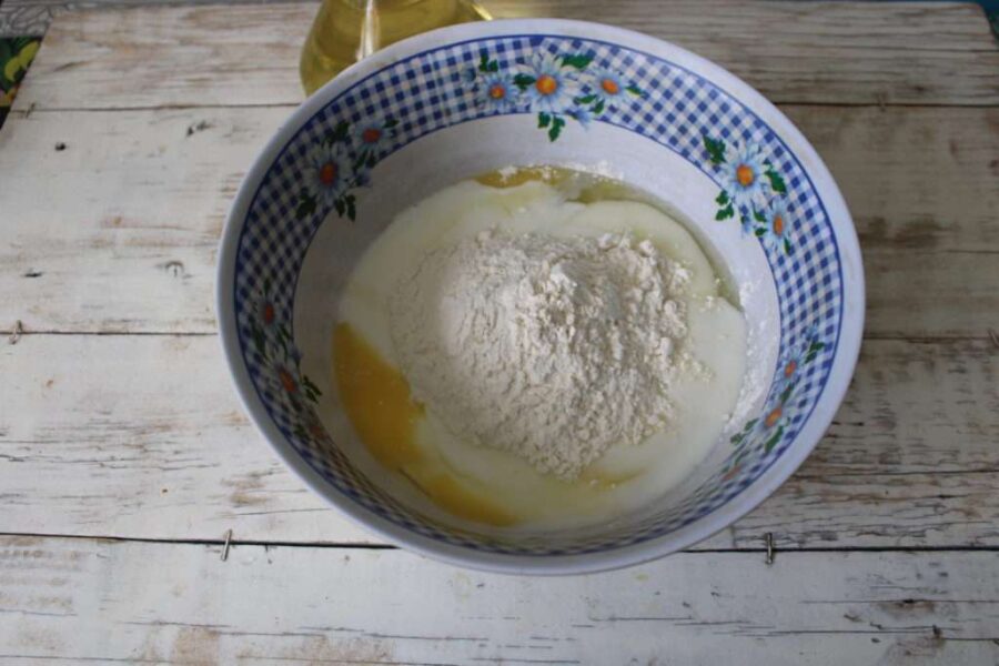 - Добавляем ложку растительного масла и переходим к жарке на разогретой сковороде.