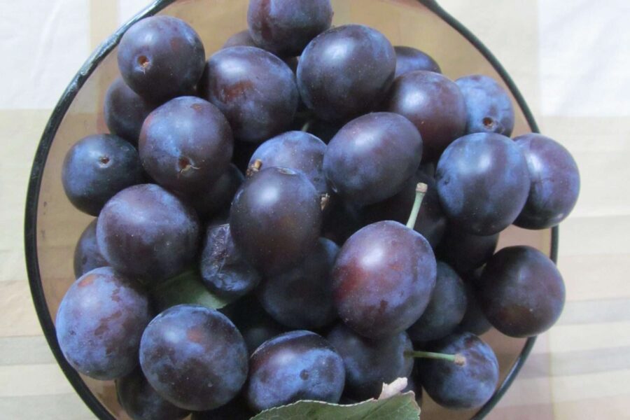 - Спелые сливы моем и отставляем просушиться в миске, затем разрезаем на половинки или четвертинки. Теперь приготовим тесто на оладьи.