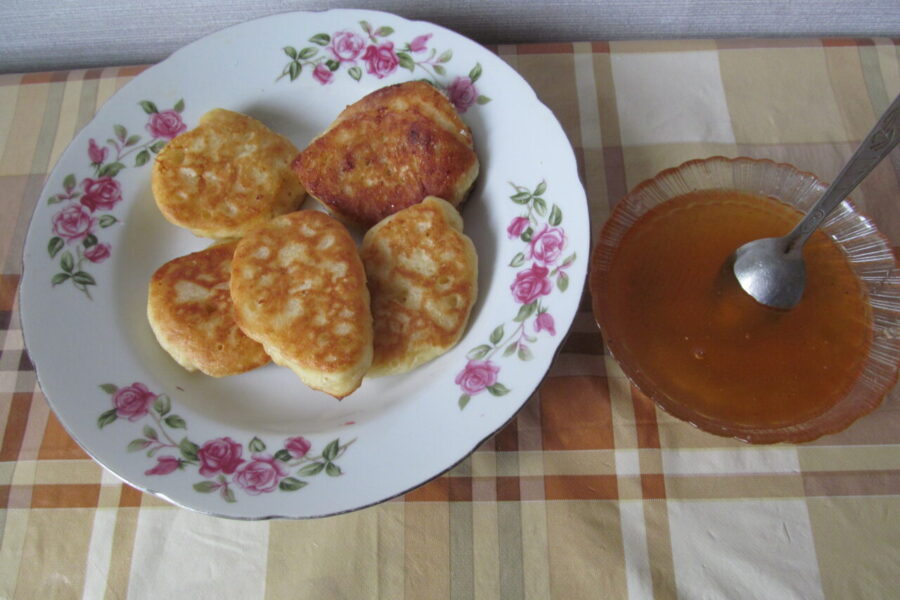 - Обжаривать необходимо с двух сторон, пока не появится румяная корочка, лучше на медленном огне, чтобы оладьи хорошо пропеклись в середине.