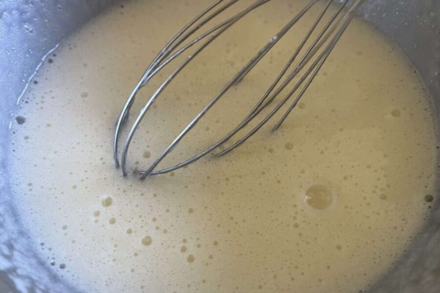 - Яйца слегка взбиваю с сахаром венчиком или миксером на малой скорости.