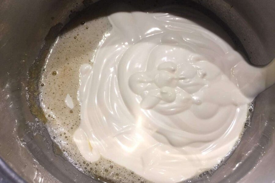 - Яйцо, сахар перетереть между собой в кастрюле. Несмотря на то, что яйцо уже присутствуют в составе майонеза, его дополнительно включают в рецептуру печенья для получения рассыпчатого теста.