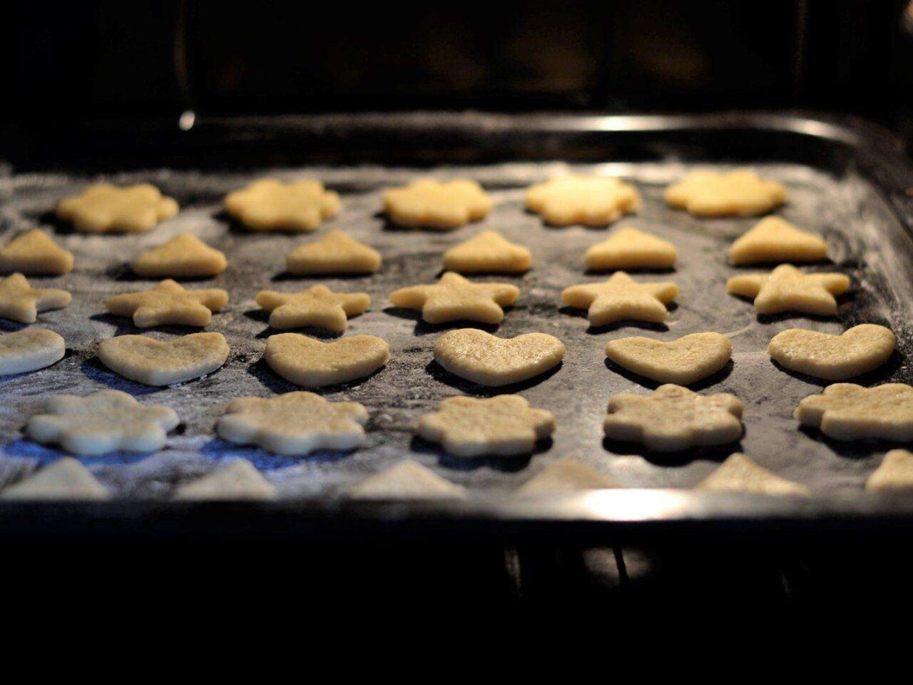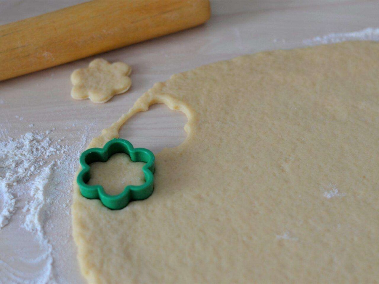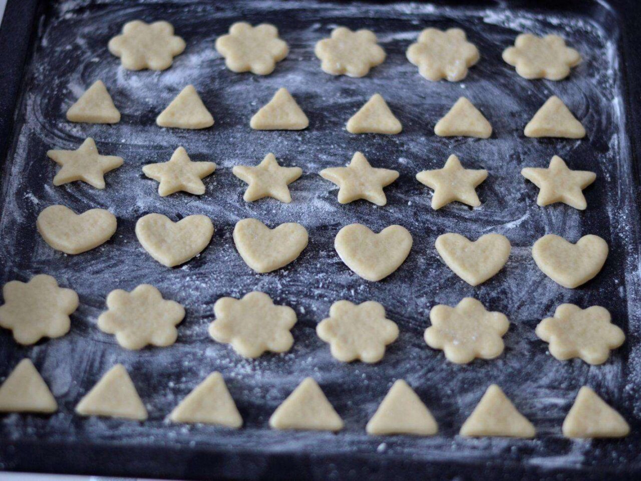 - Формируем печенье при помощи формочек или просто нарезаем на прямоугольные кусочки острым ножом.
