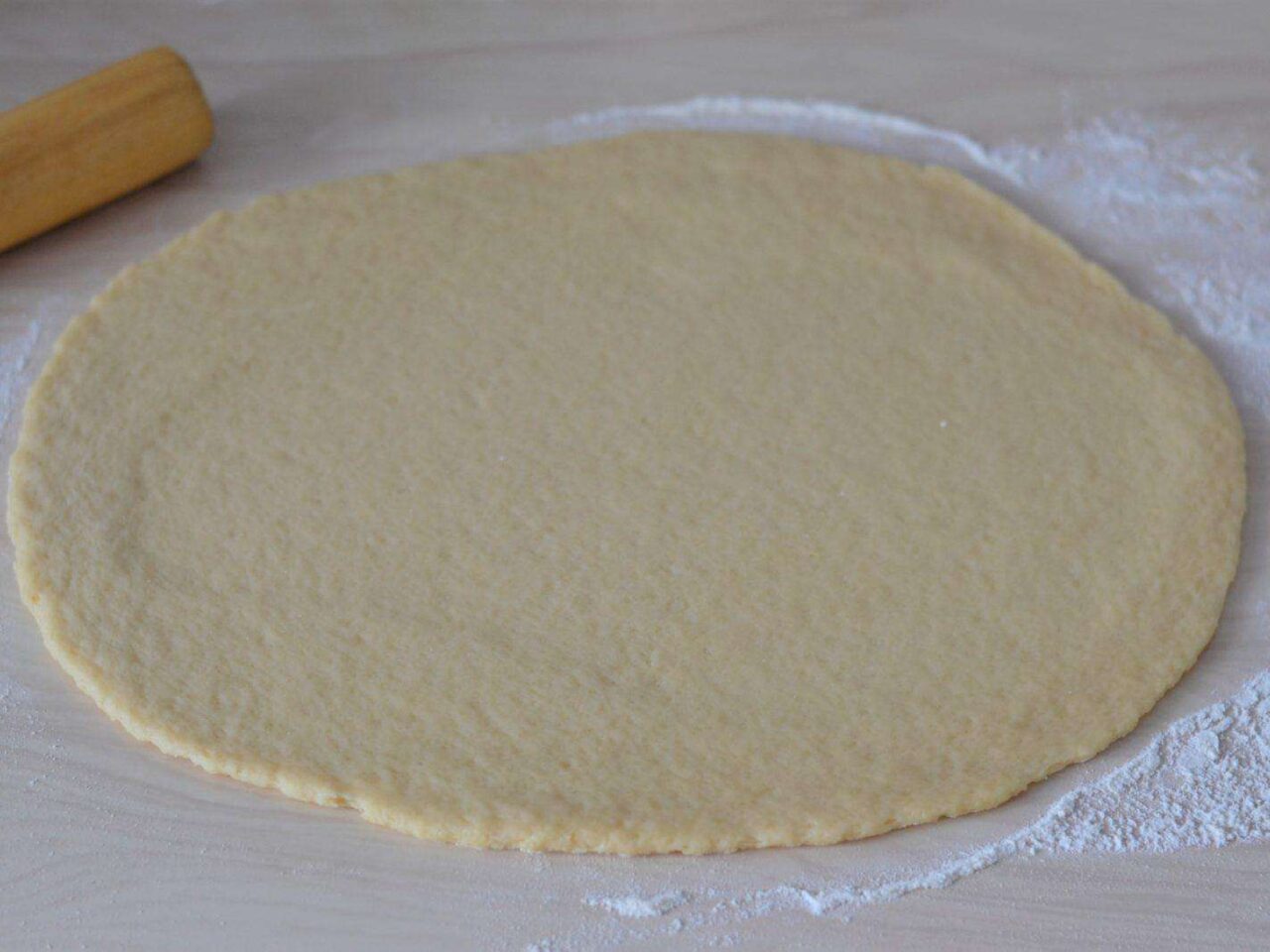 - На столе, присыпанным мукой, раскатываем подготовленное тесто толщиной 0,5 см.