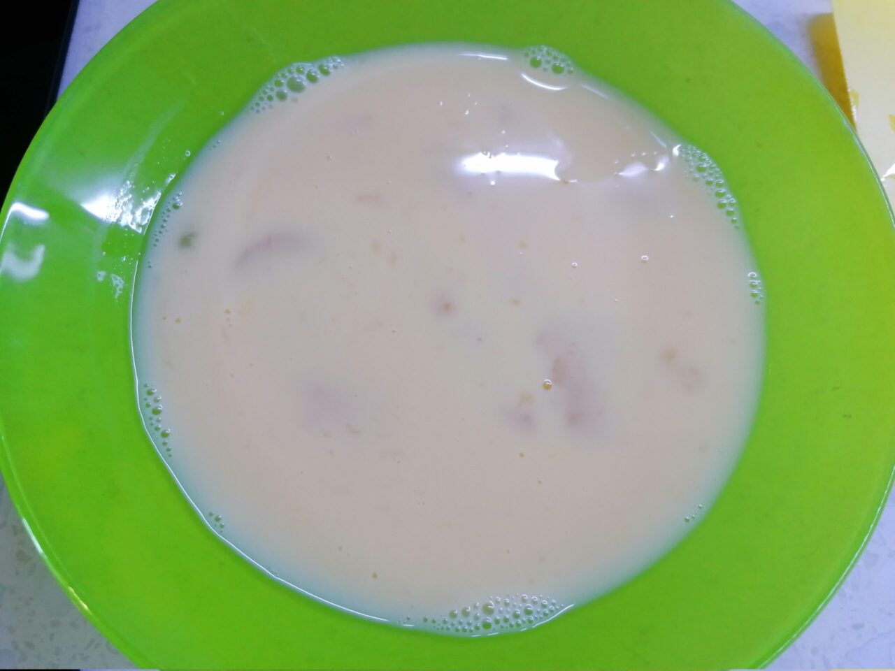 - Яйца разбиваем в глубокую тарелку, добавляем молоко, соль и взбиваем вилкой или венчиком. По желанию можно добавить перец или приправу.