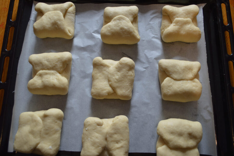 - Выложите плацинды на противень, выстеленный пергаментом для выпечки, и оставьте подниматься на 15-20 минут.