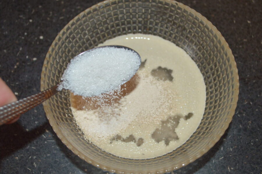 - Добавьте 1 чайную ложку сахара и накройте тарелкой на 5 минут, пока не поднимется небольшая пена.