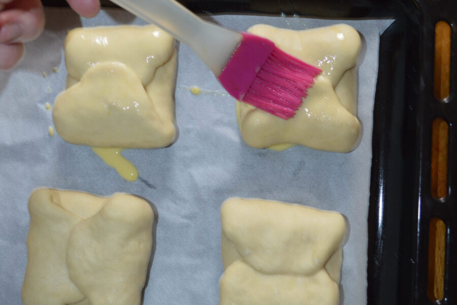 - Разогрейте духовку до 180 С, затем взбейте яйцо с двумя столовыми ложками молока и смажьте плацинды. Выпекайте в течение 17-20 минут, в зависимости от вашей духовки.