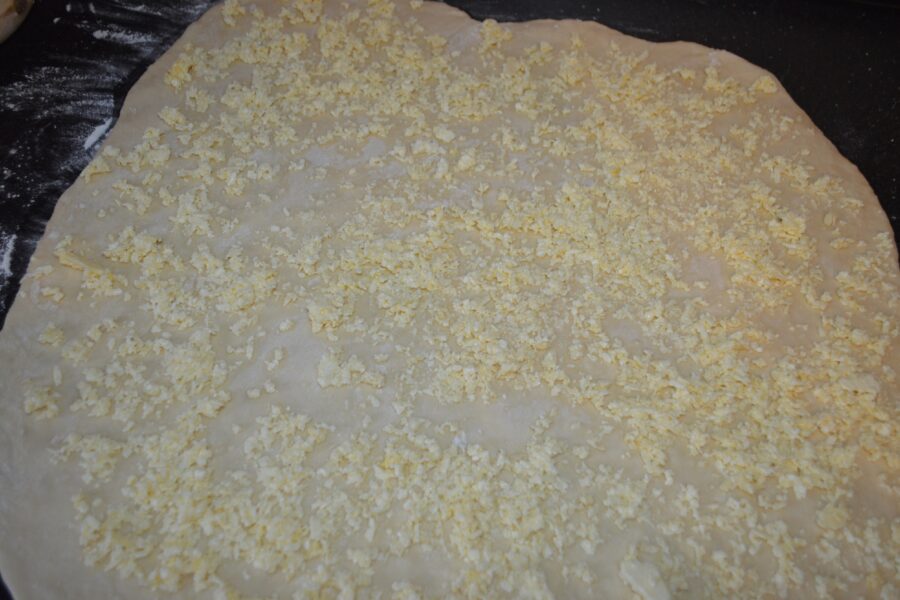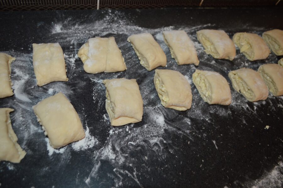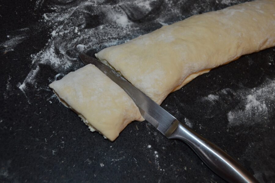 - Разрежьте ножом сформированный рулет, чтобы сделать больше плацинд.