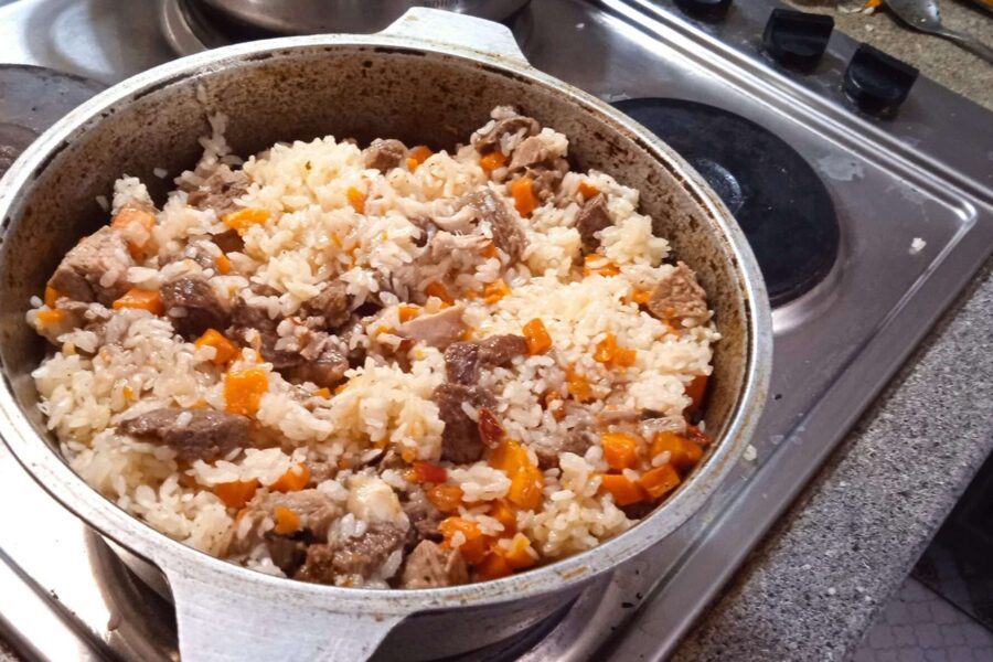 Плов с говяжьими ребрышками — одно из тех блюд, которые дарят ощущение настоящего домашнего уюта. Богатство вкуса достигается за счёт наваристых говяжьих косточек, ароматных специй и рассыпчатого риса. Сочный, насыщенный и невероятно сытный — он идеально подходит для дружеских или семейных застолий.