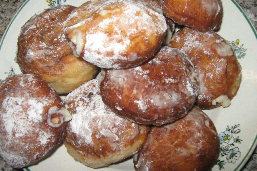 Пончики с заварным кремом — это классика сладкой выпечки: воздушное дрожжевое тесто, жаренное во фритюре до золотистого цвета, наполняется гладким ванильным заварным кремом, создавая сочетание хрустящей корочки и мягкой центрической структуры.