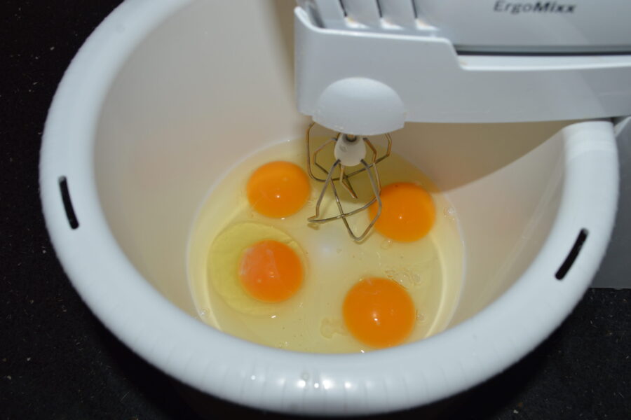 - Взбейте яйца миксером на высокой скорости.