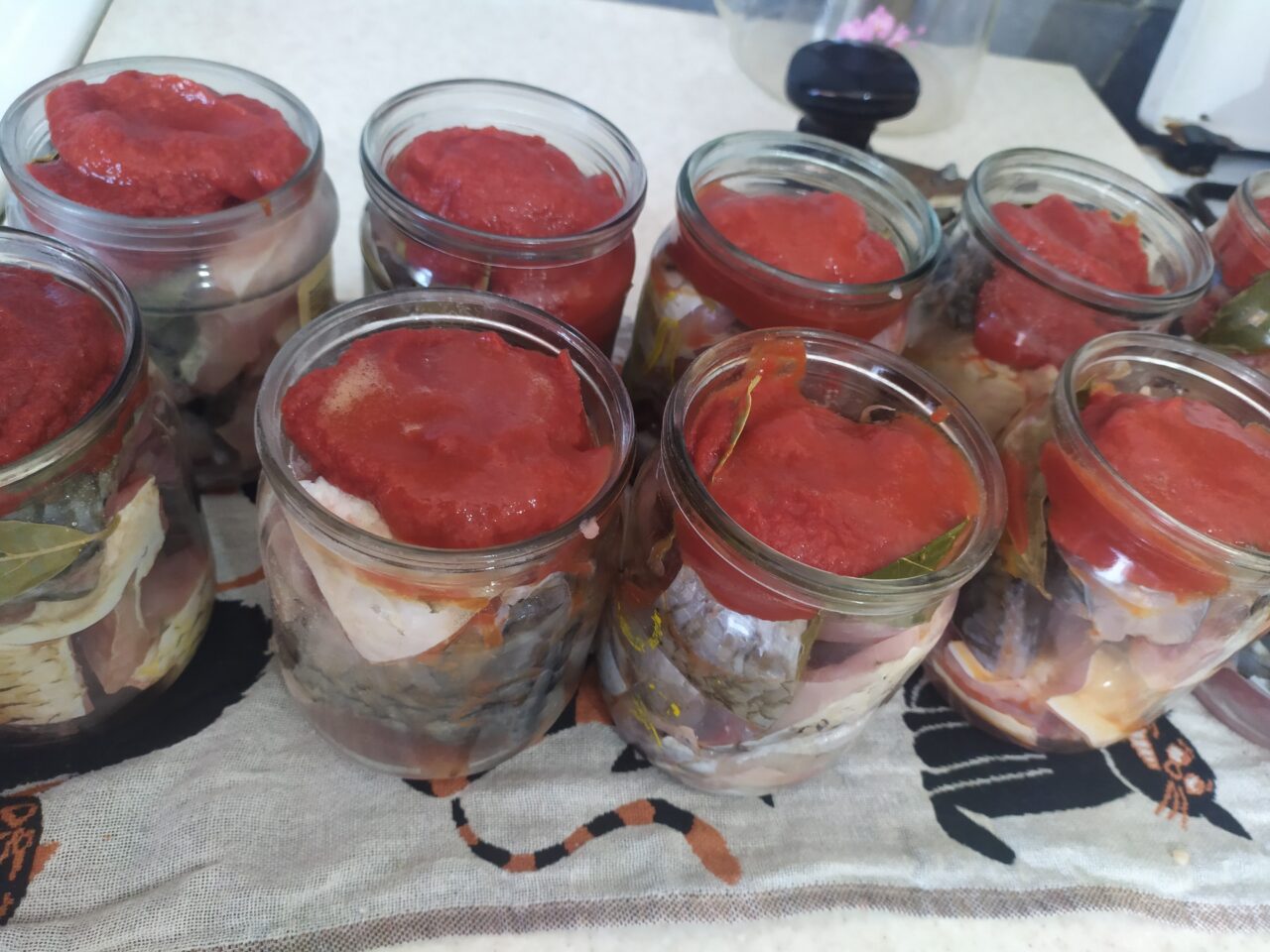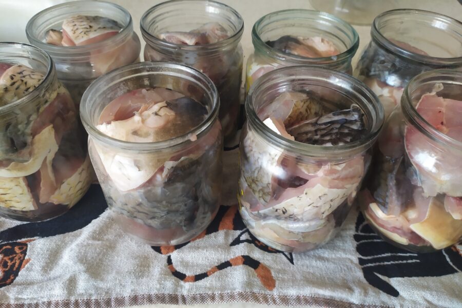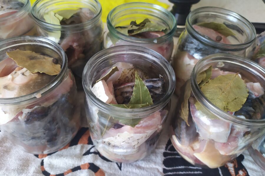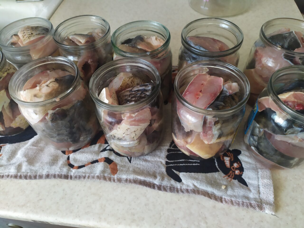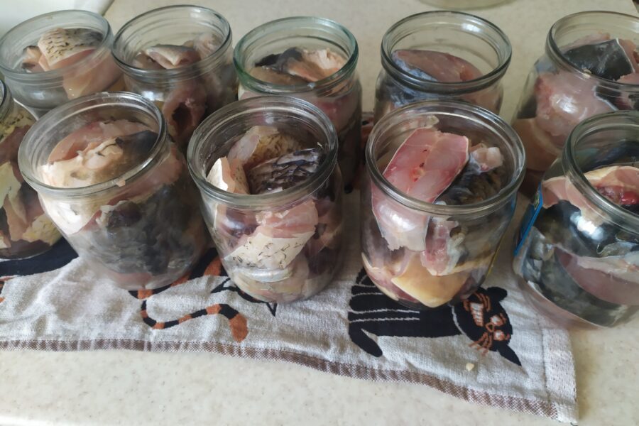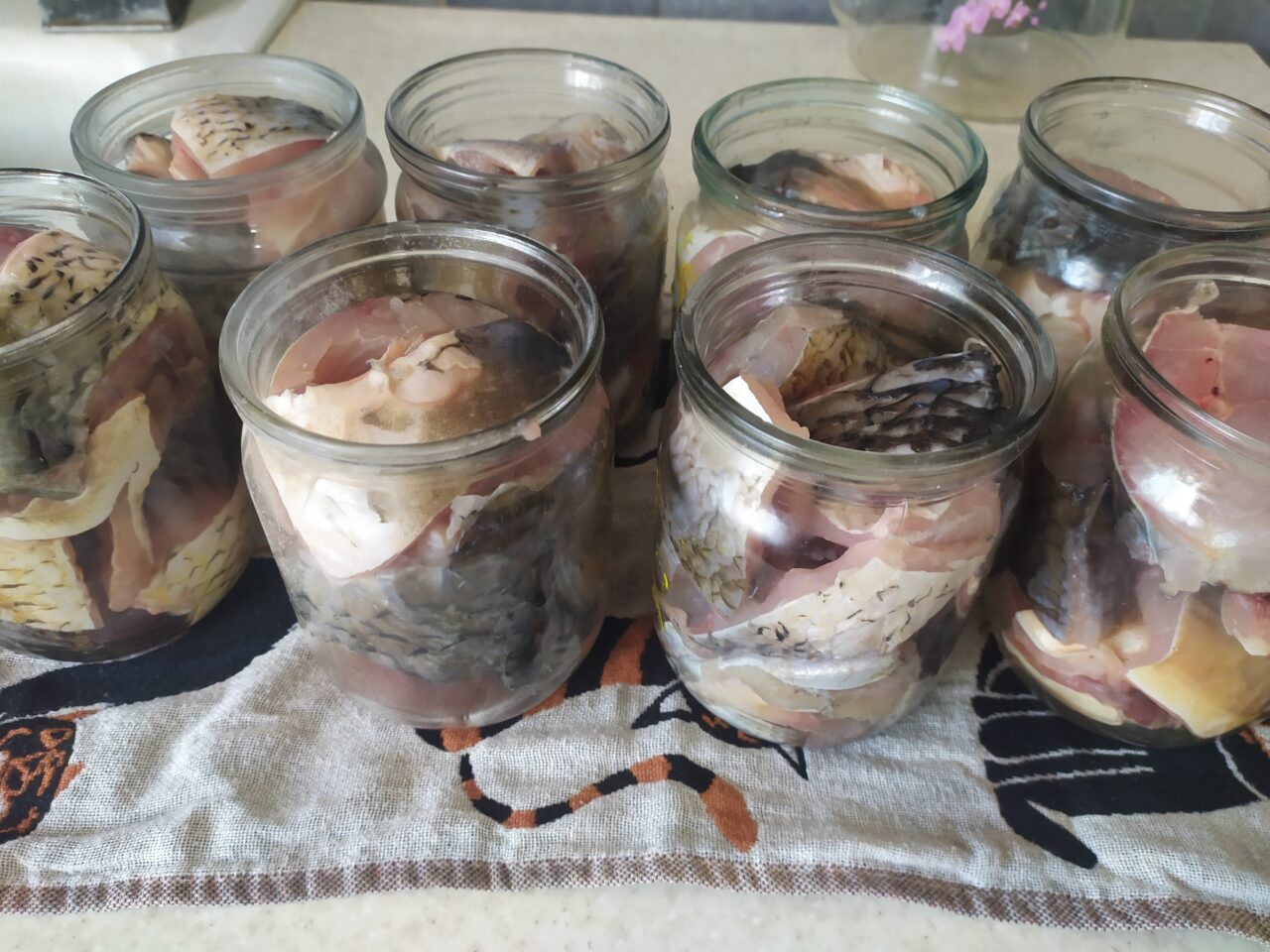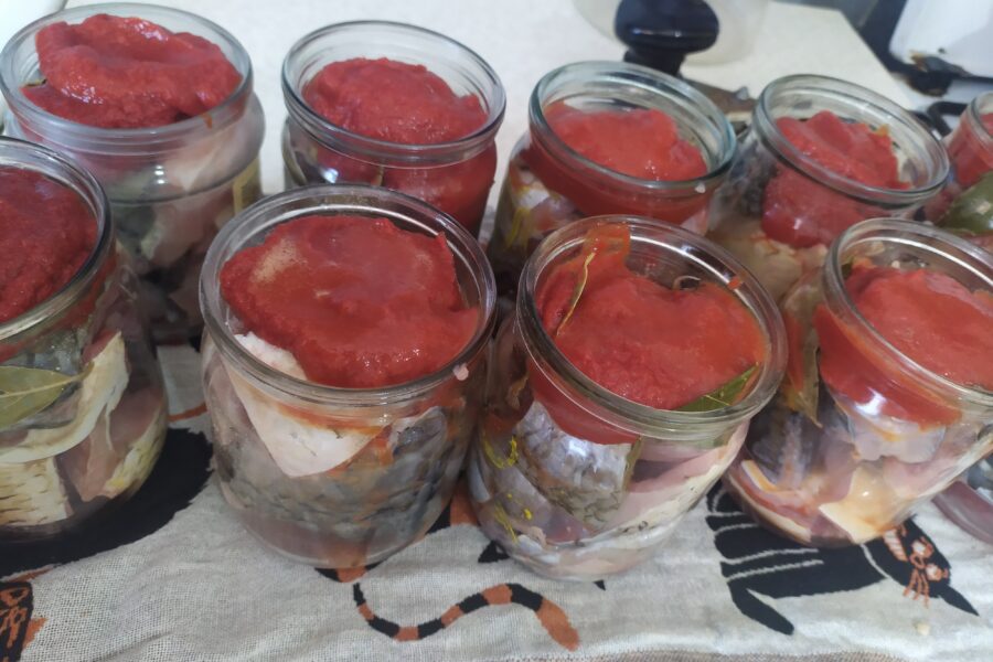 - Внимание! Готовить рыбу на медленном огне при температуре 120 градусов 60 мин. После убрать огонь, и только после полного остывания емкости (через 8-10 ч) достать банки и убрать для дальнейшего хранения в темное прохладное место.