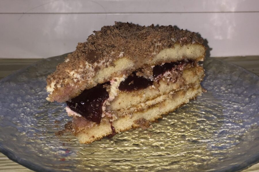 - Настоять торт в холодильнике минимум 3-4 часа, чтобы вишневый сок и крем как следует пропитали коржи.
