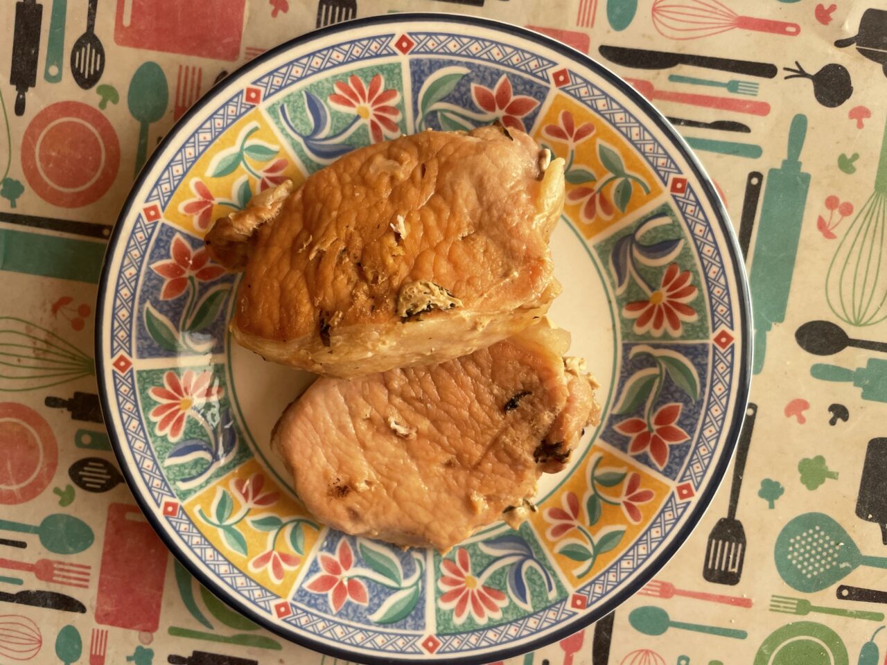 - Вымытую свинину надрезать, в разрезы залить лимонный сок – его совсем просто выжать рукой, но проследить, чтобы он был без косточек. Посолить. Пусть так постоит около часа.